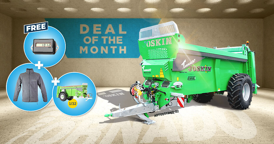 Offer subject to conditions, valid from 01.01.2026 to 31.01.2026. Offer valid only on JOSKIN Tornado HORIZON Advantage ADTO5513H/2-22 muck spreaders, while stocks last. Offer valid for professional resellers too.