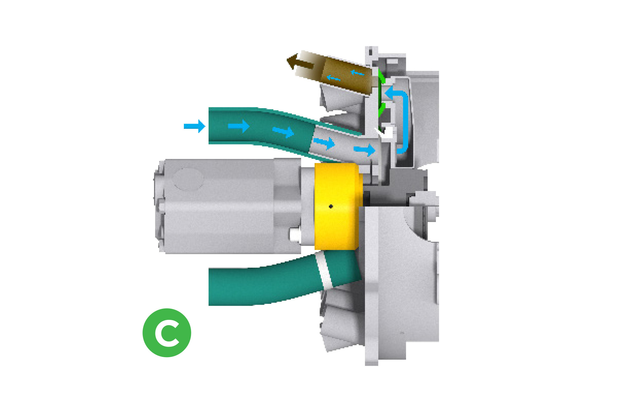 (C) Dispositivo de entrada de aire con conexión de manguera posible para facilitar la limpieza.