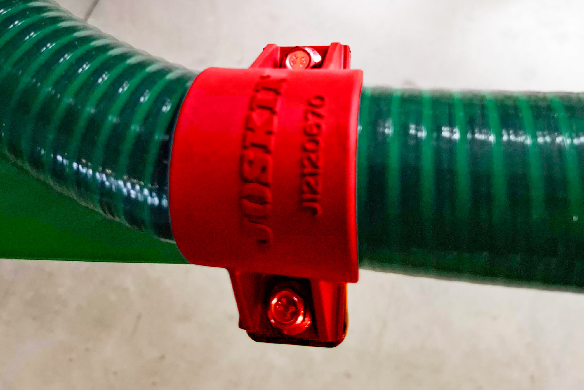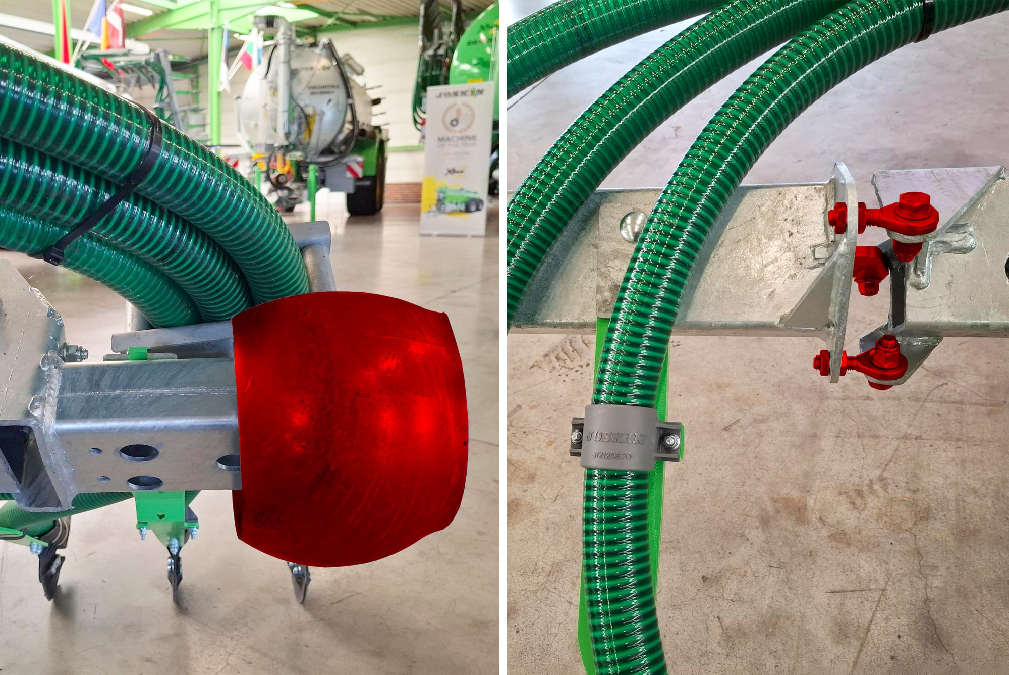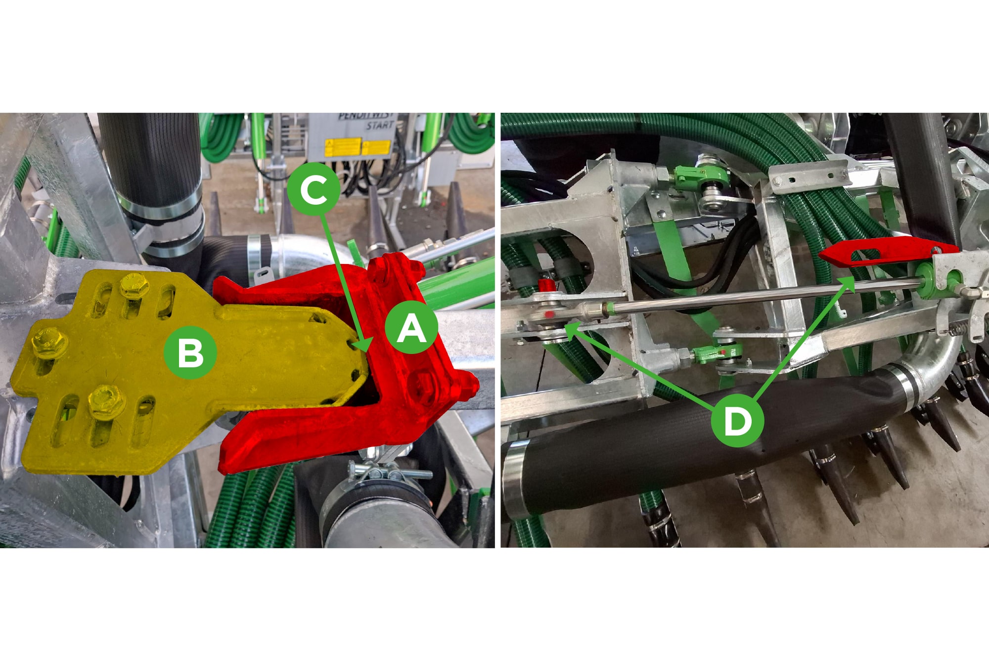 (A) Bloqueo ajustable de los tubos de inyección para protegerlos del desgaste debido a las vibraciones.