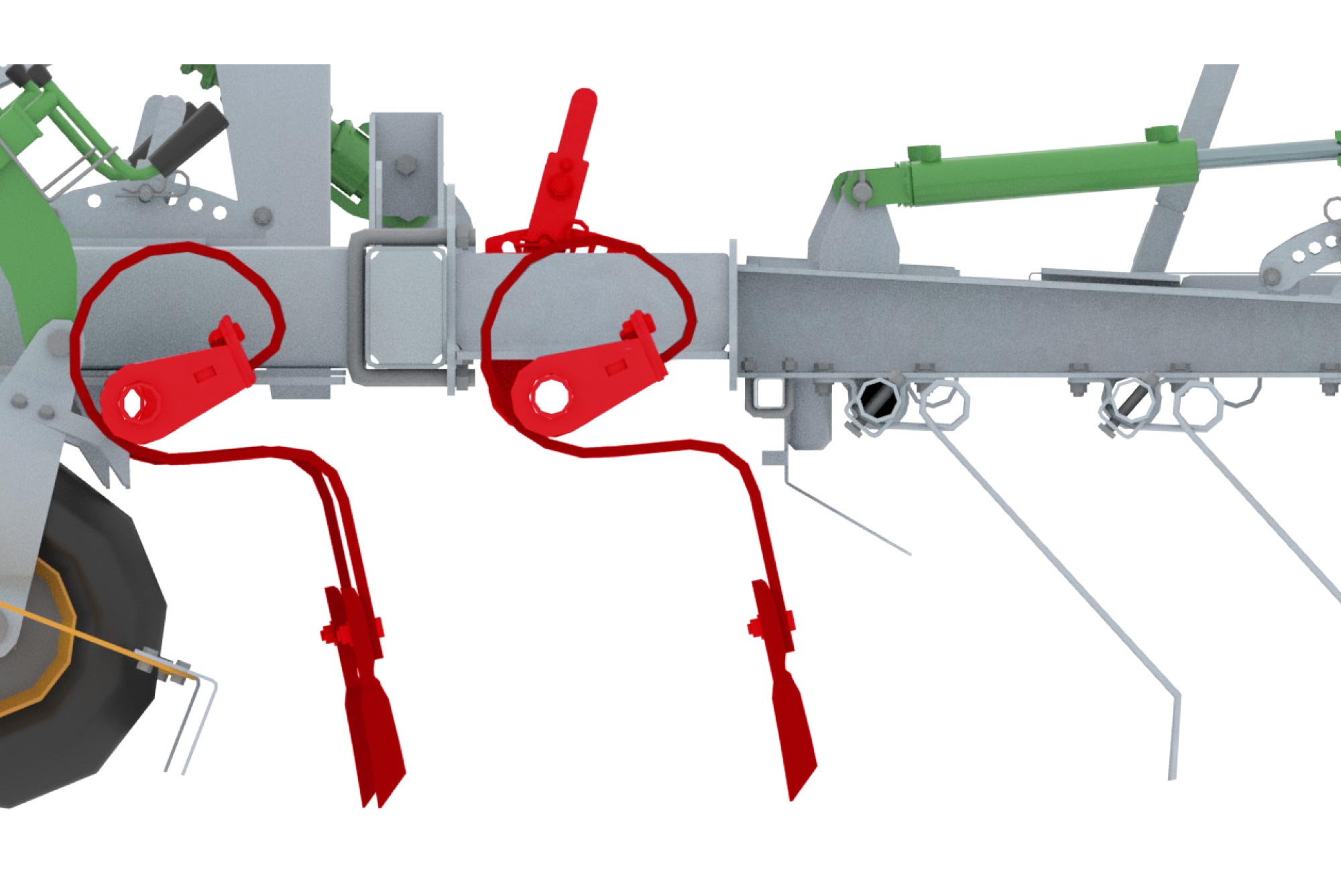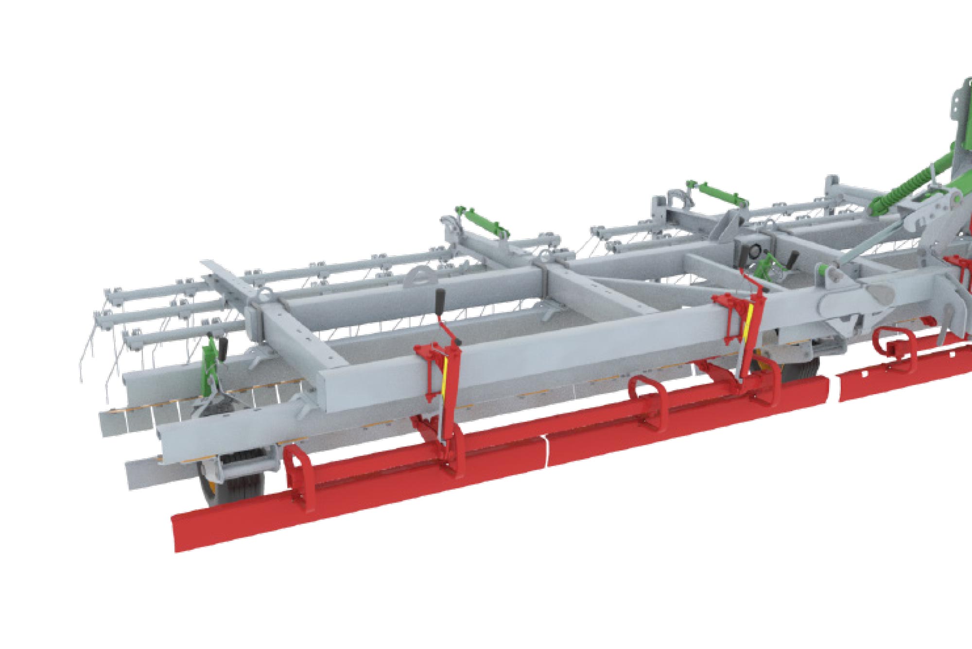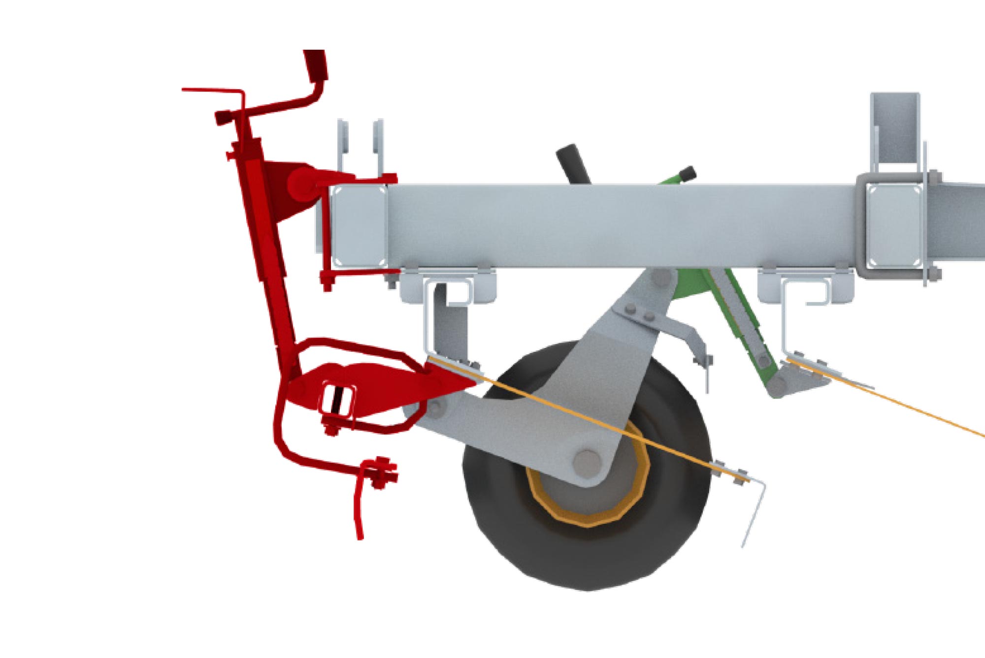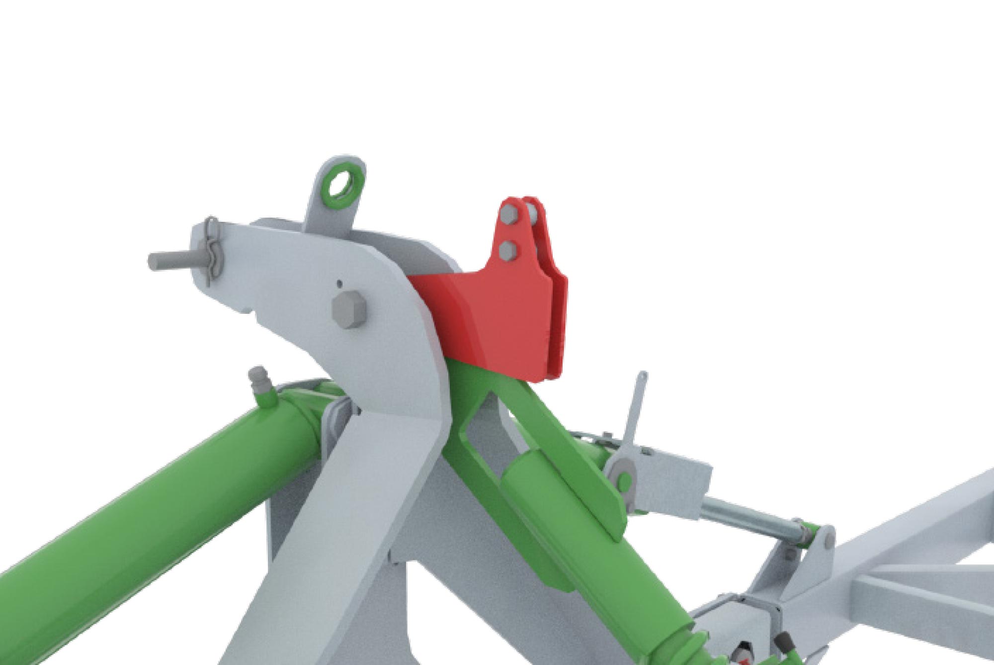 Acoplado con un enganche articulado y un tercer punto con resorte para un seguimiento suave del terreno.