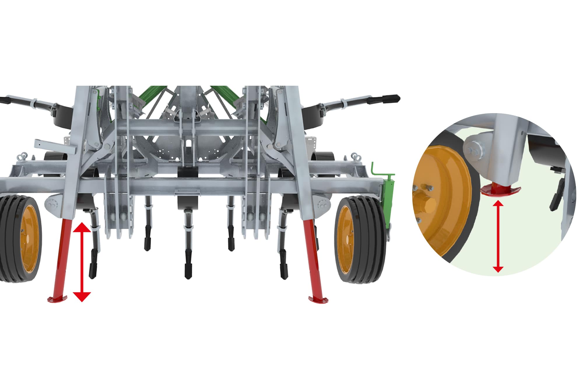 Con ajuste de altura mediante manivela y regla de posición (sólo disponible en Terraflex/2 y /2XXL).