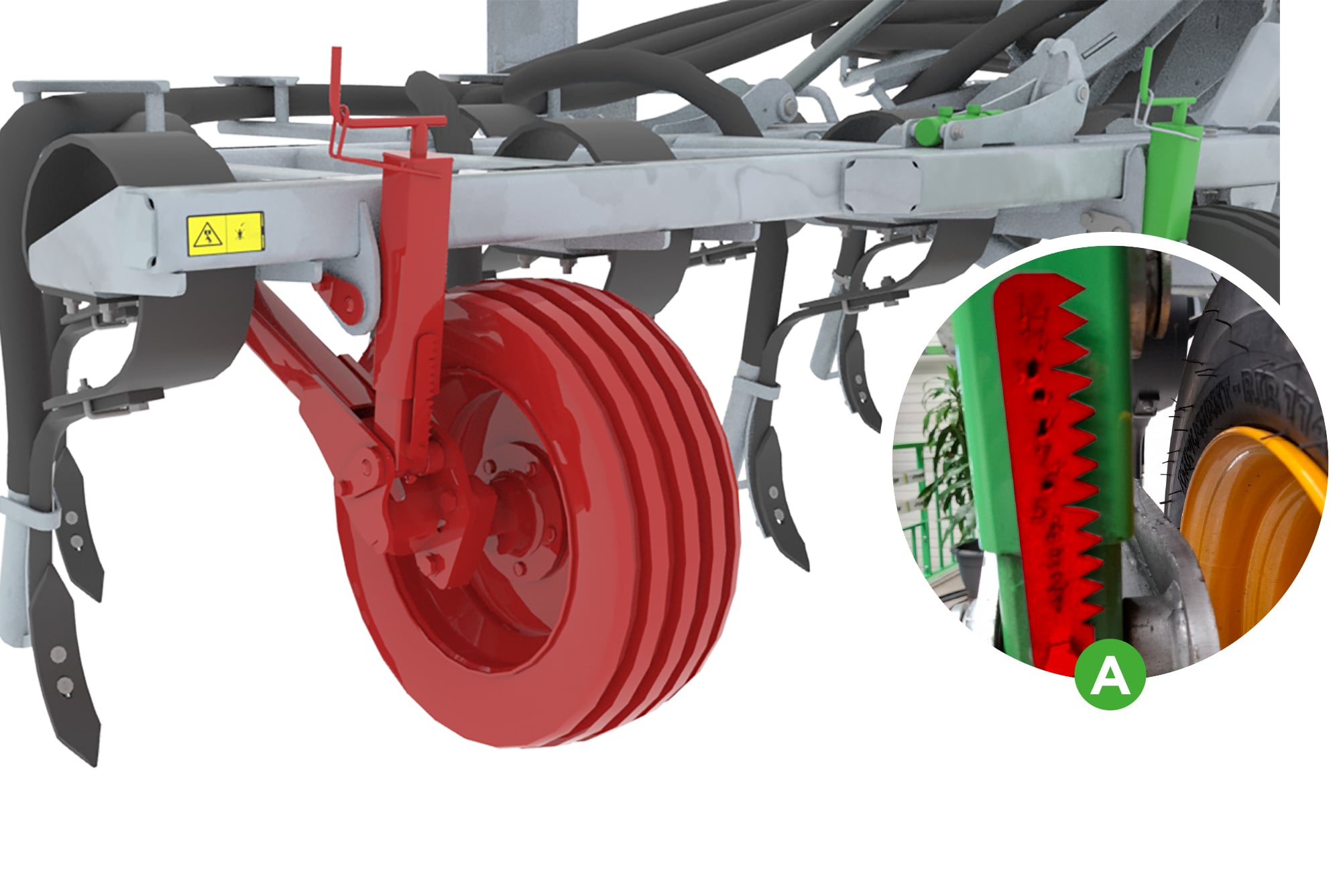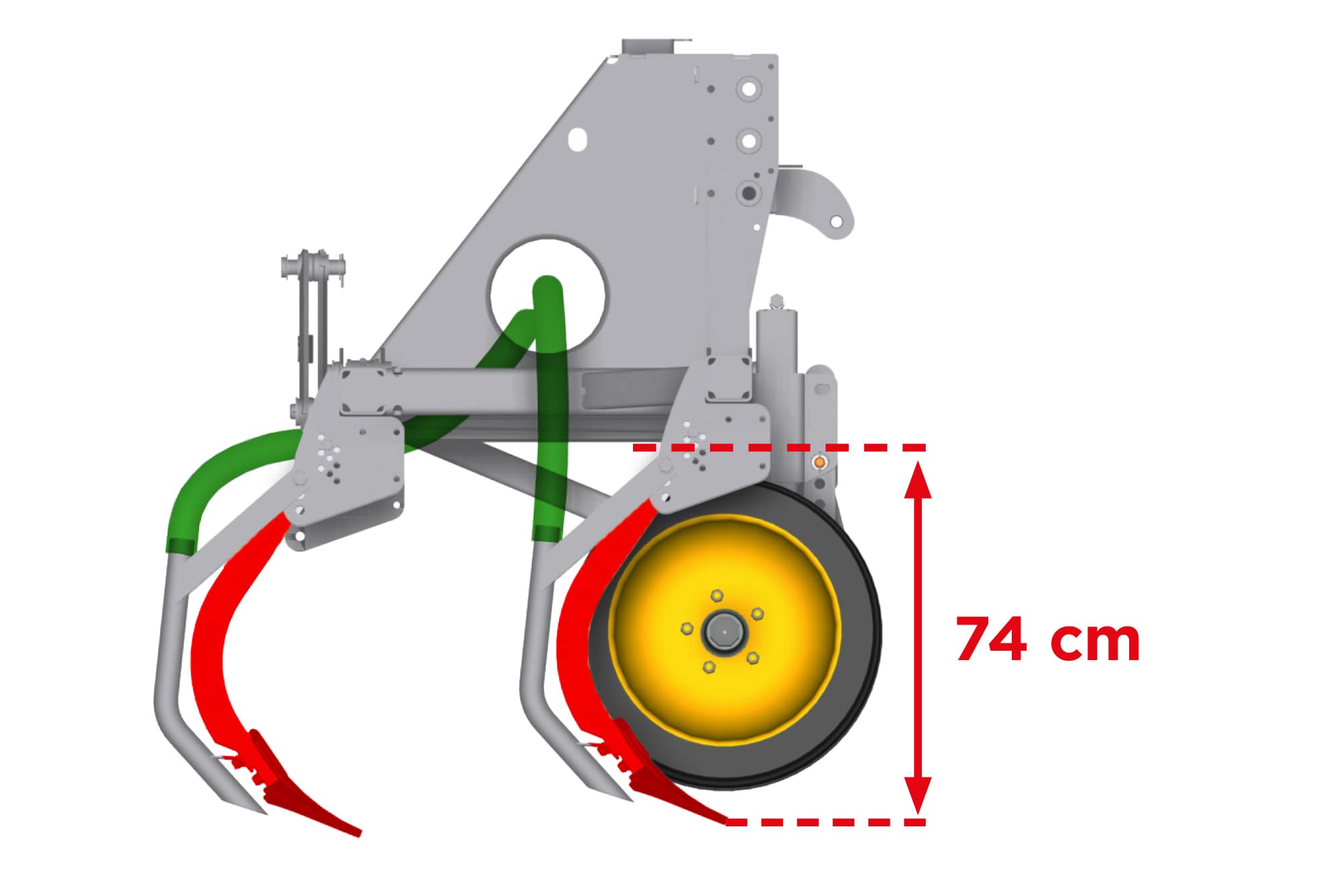 Para trabajos más profundos detrás de las ruedas del tractor.