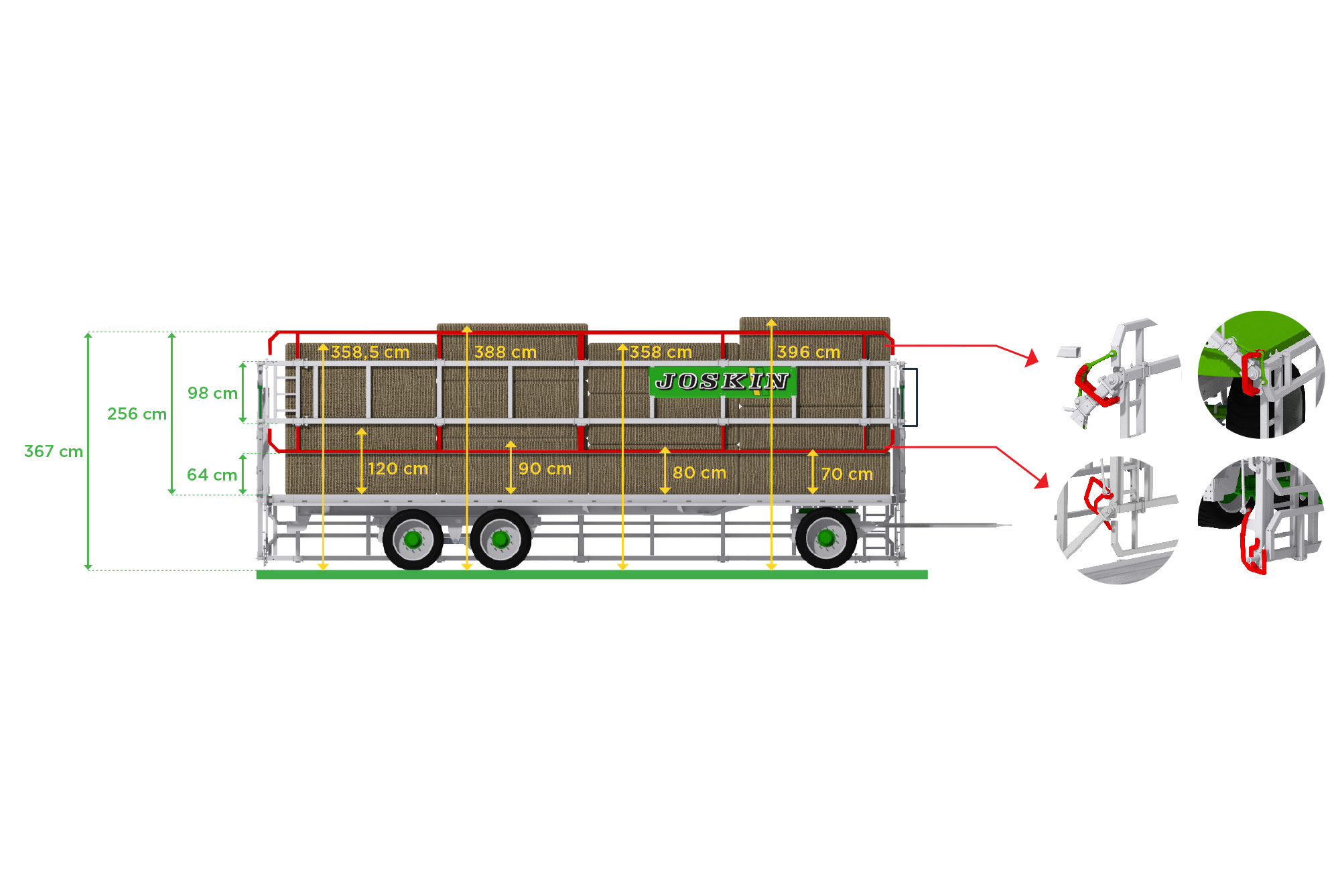 Para asegurar automáticamente las pacas superiores independientemente de su altura (de 70 a 120 cm) • Sistema patentado.