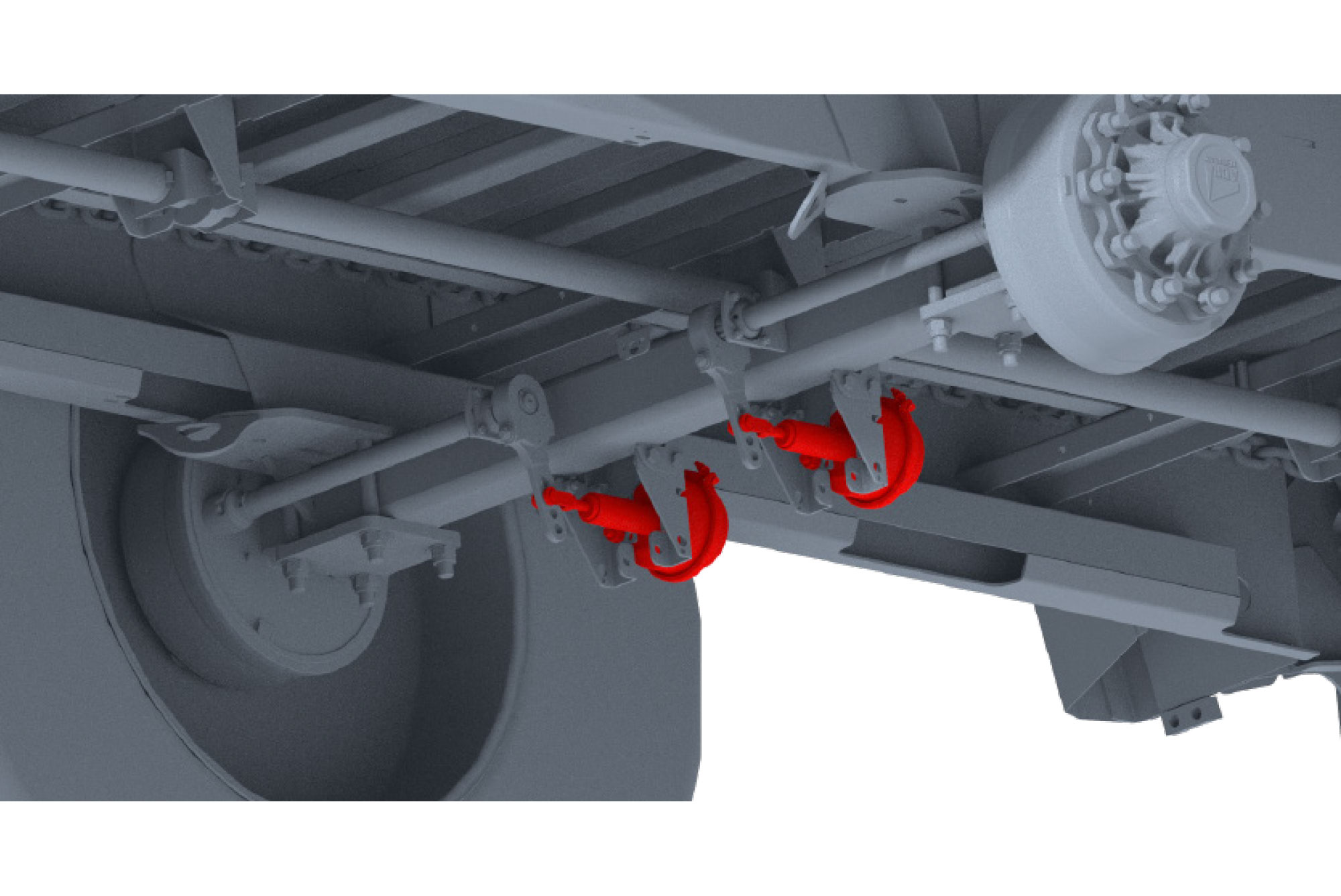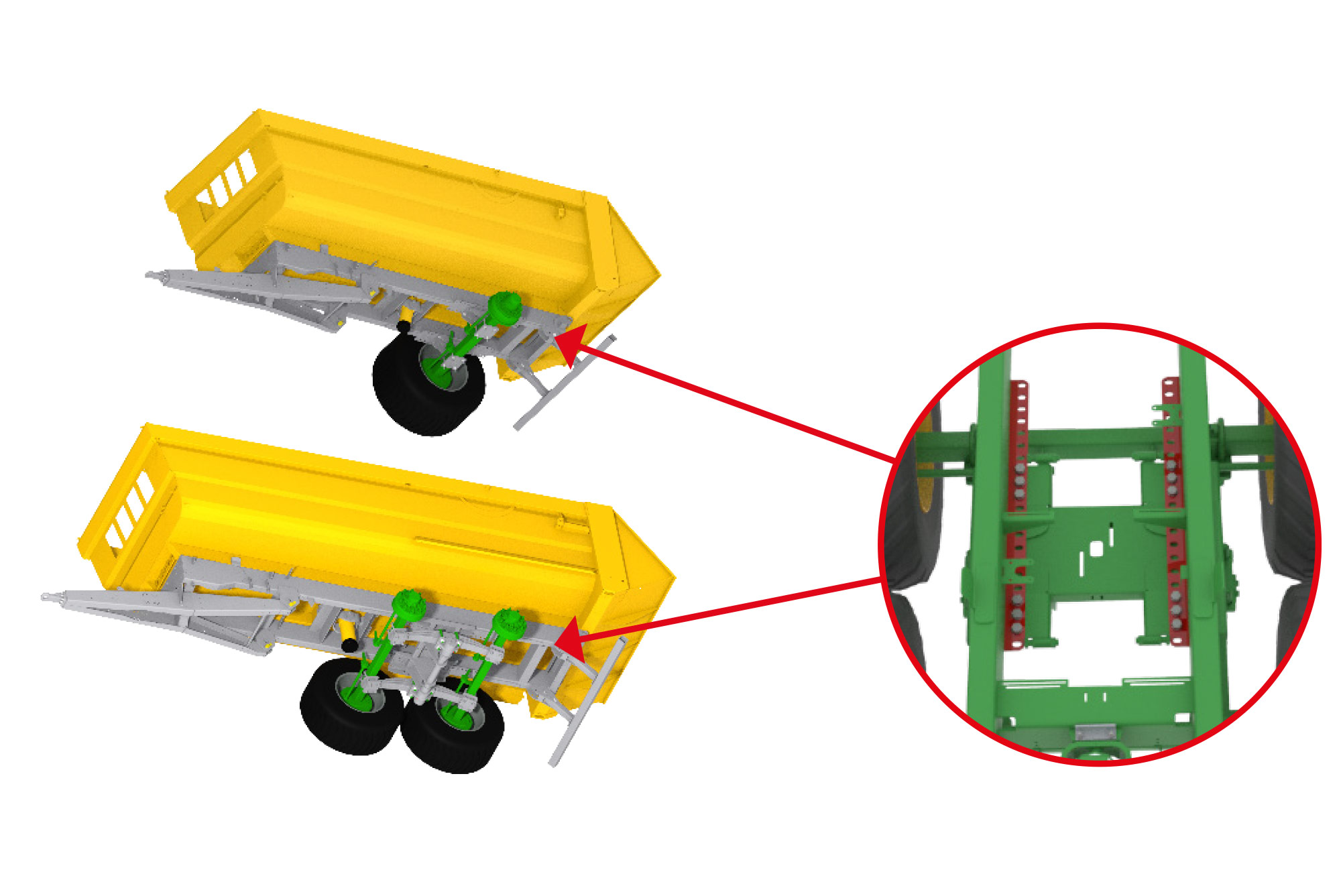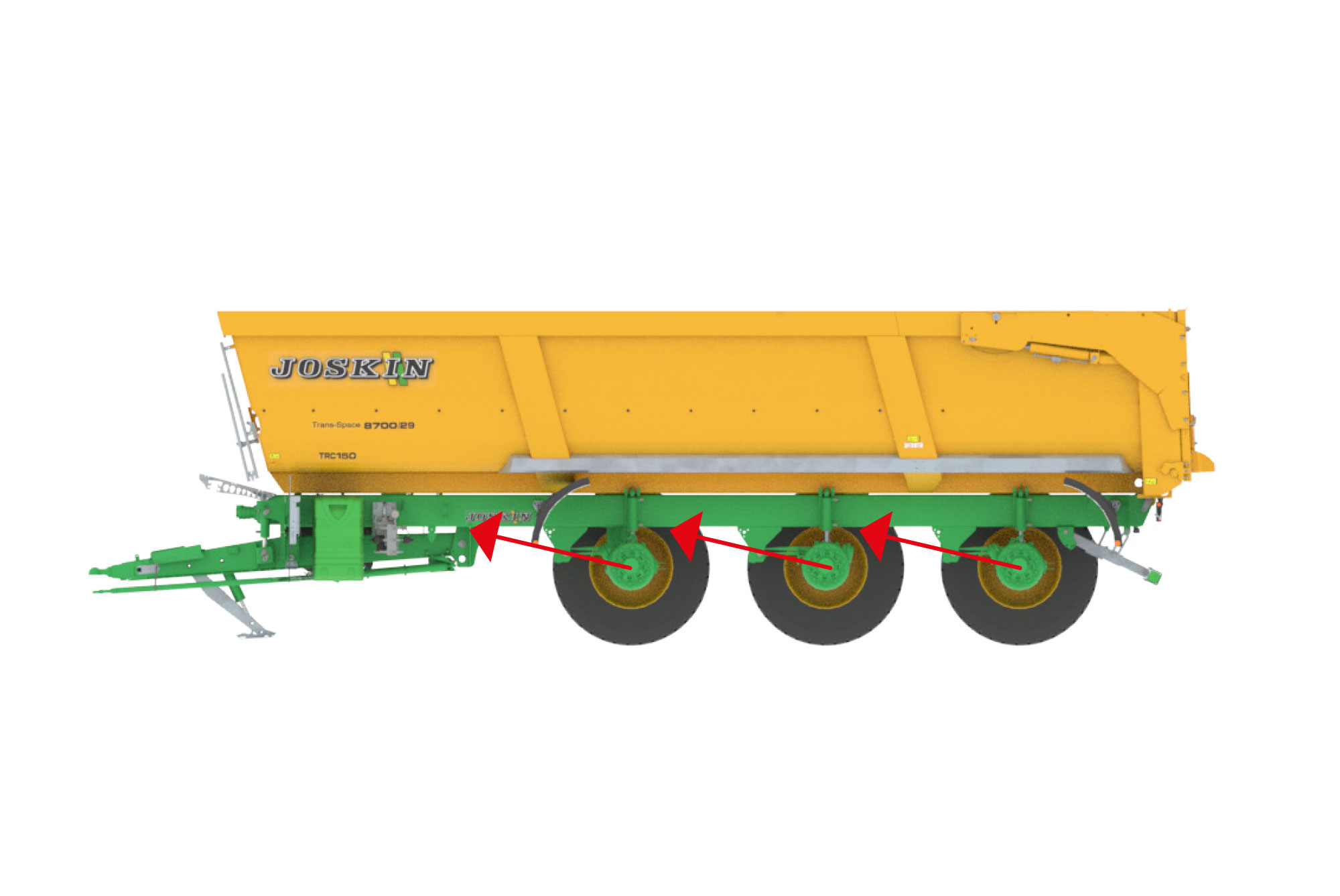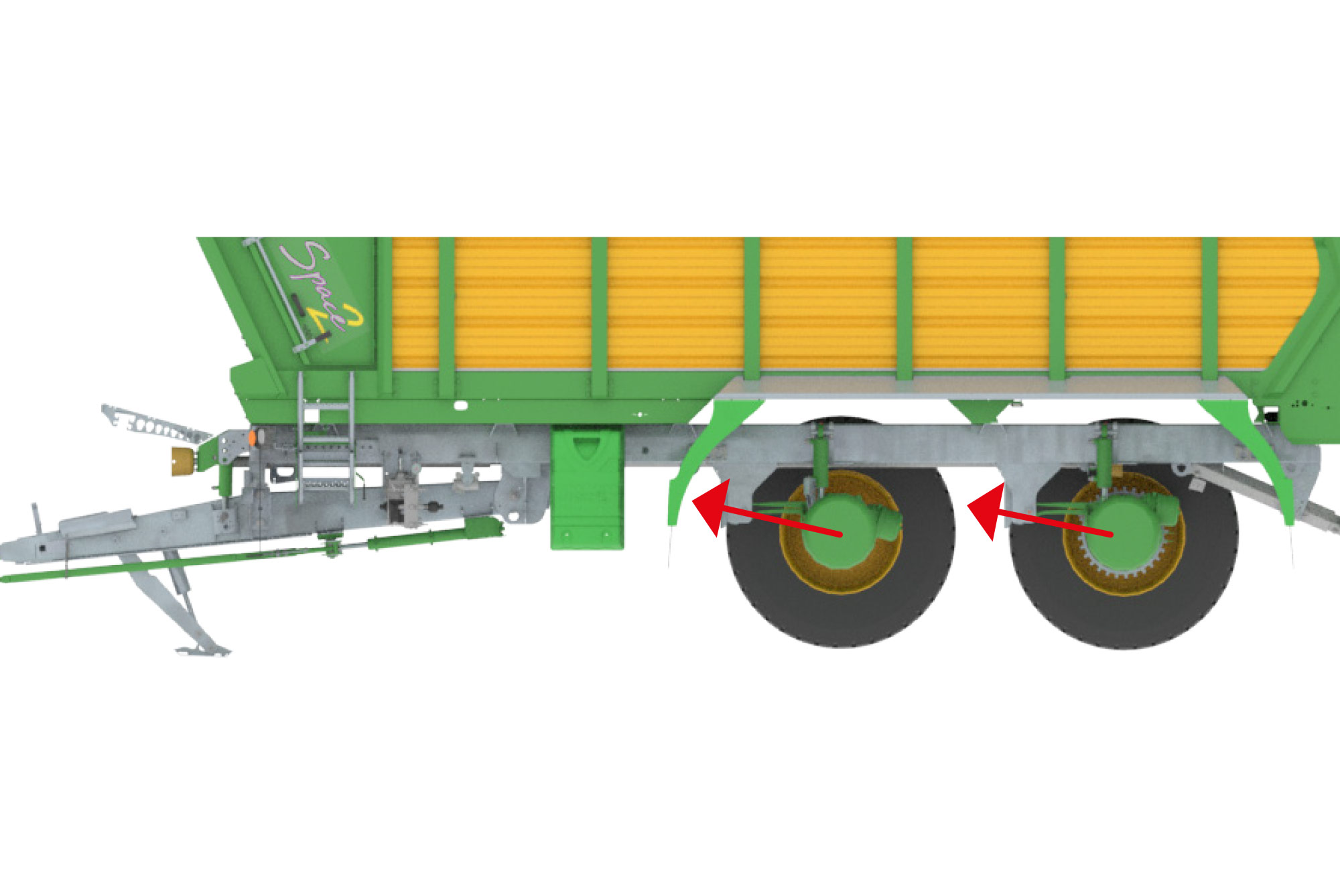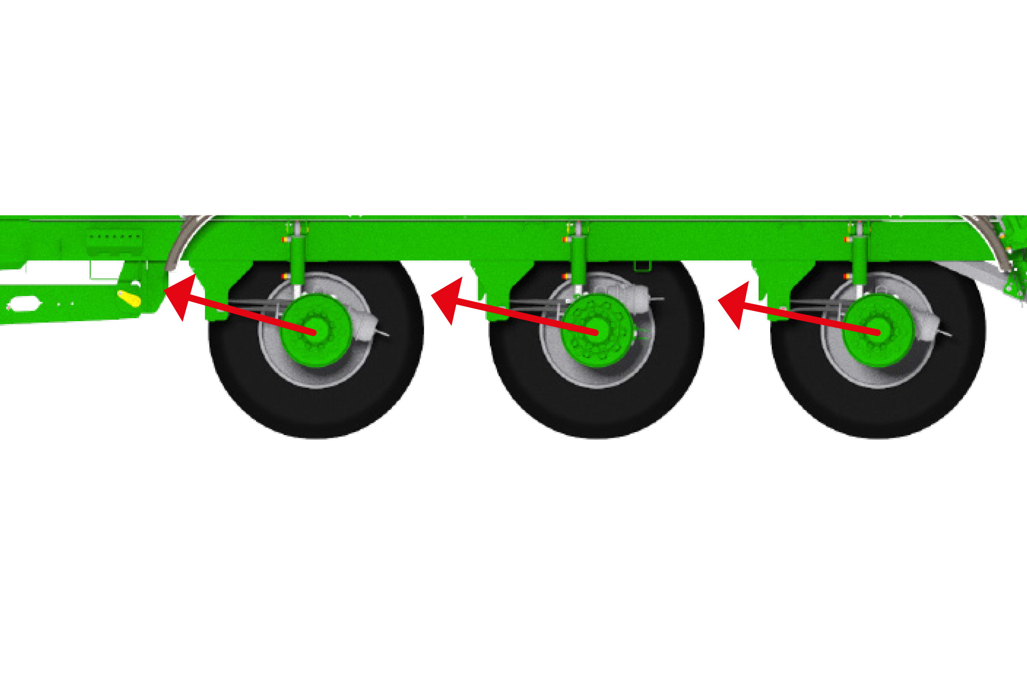 hydraulische vering van de assen met 1 700 mm wielbasis – manuele hoogte-instelling, of automatisch als optie