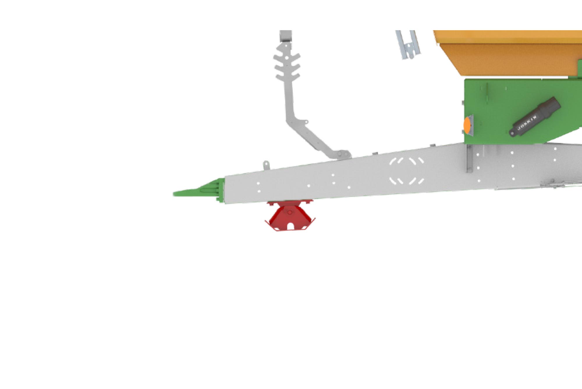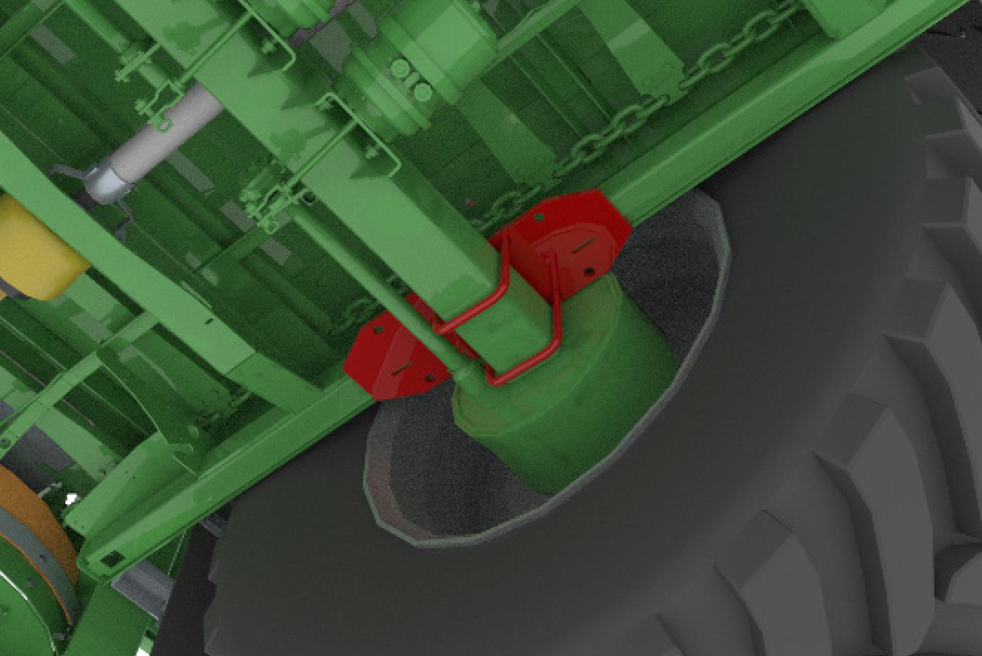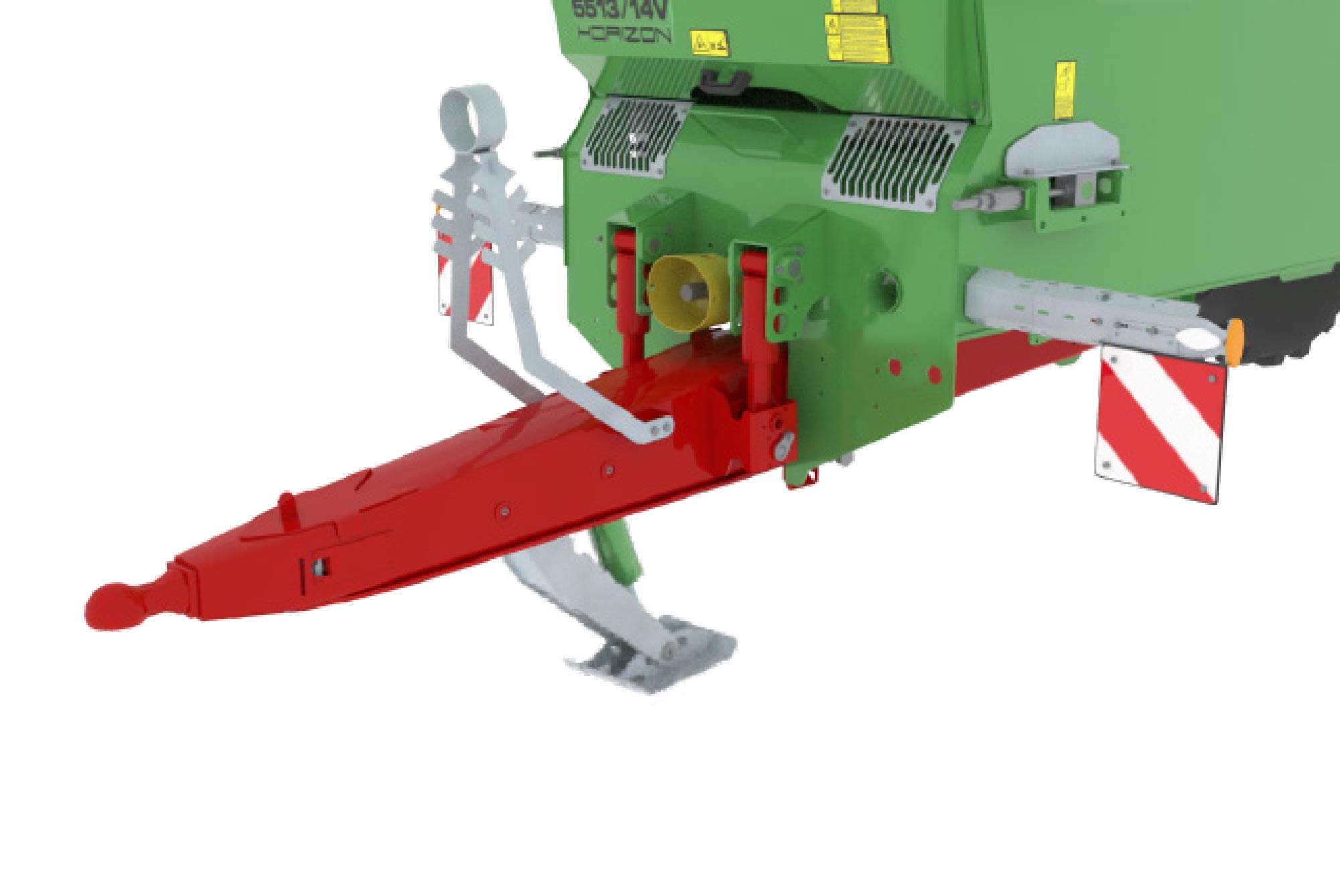 Omkeerbare dissel voor hoge aanspanning met Y-vormige structuur voor koppeling zo dicht mogelijk bij de assen voor een natuurlijke tractielijn en minder benodigd vermogen.