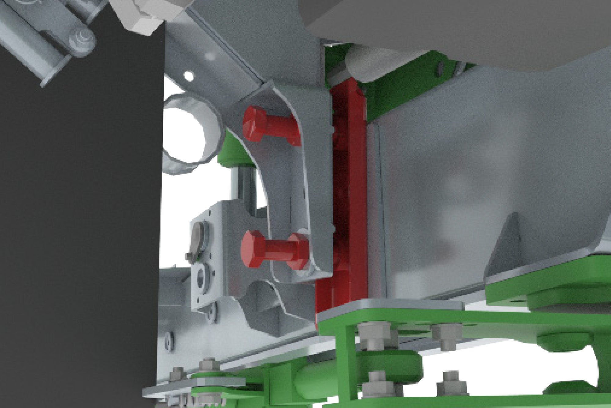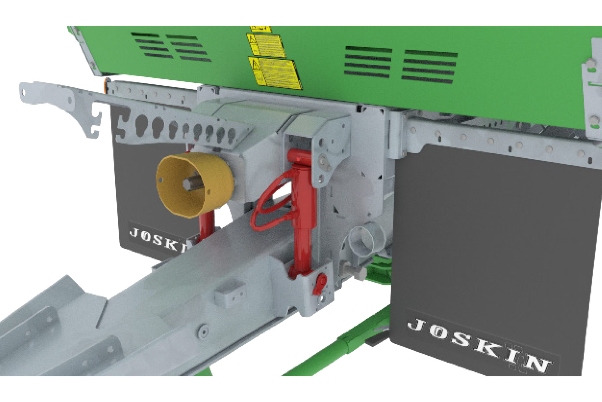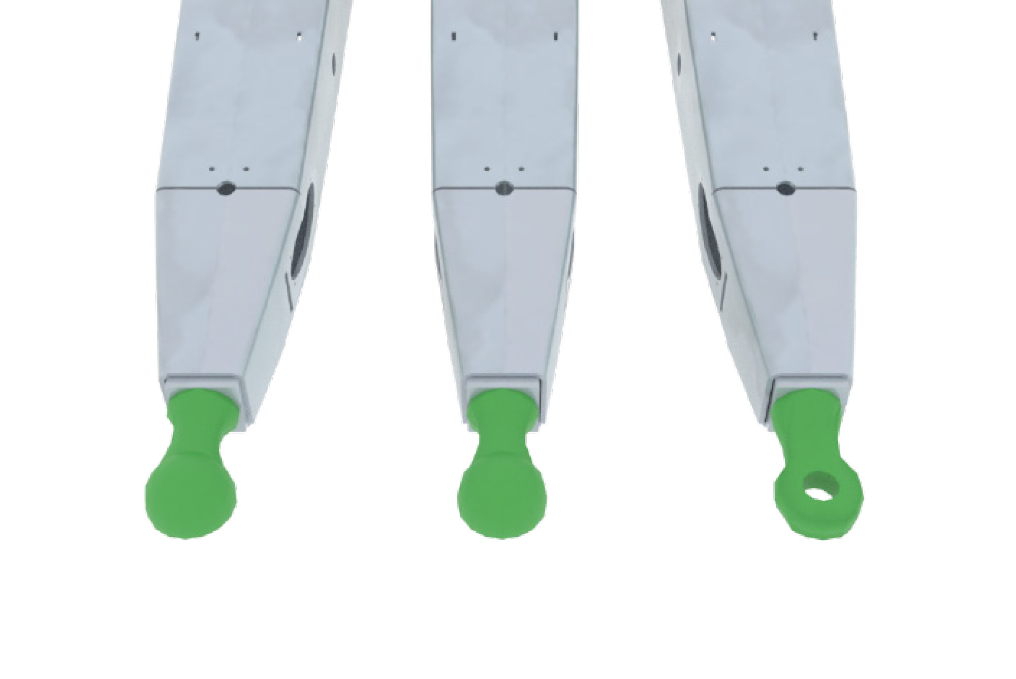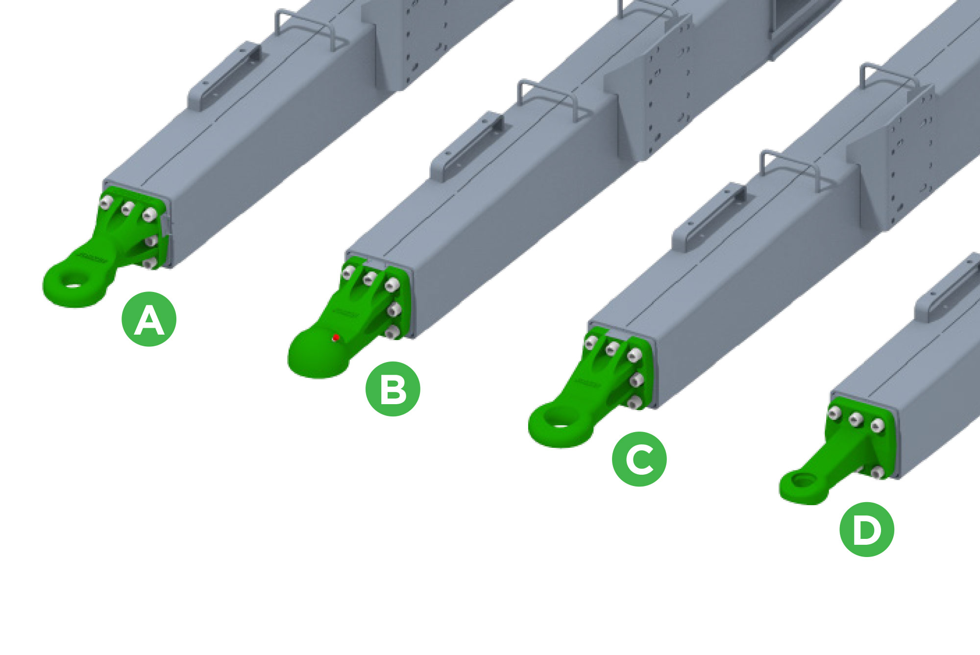 Omkeerbare dissel voor hoge aanspanning met Y-vormige structuur voor koppeling zo dicht mogelijk bij de assen voor een natuurlijke tractielijn en minder benodigd vermogen.
