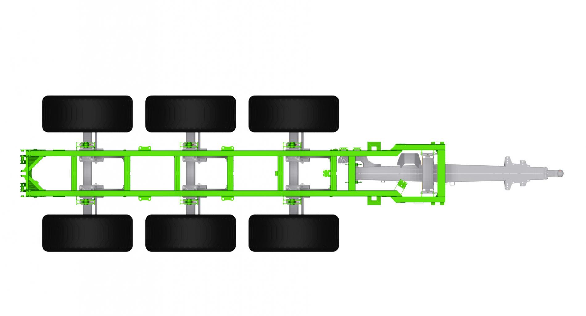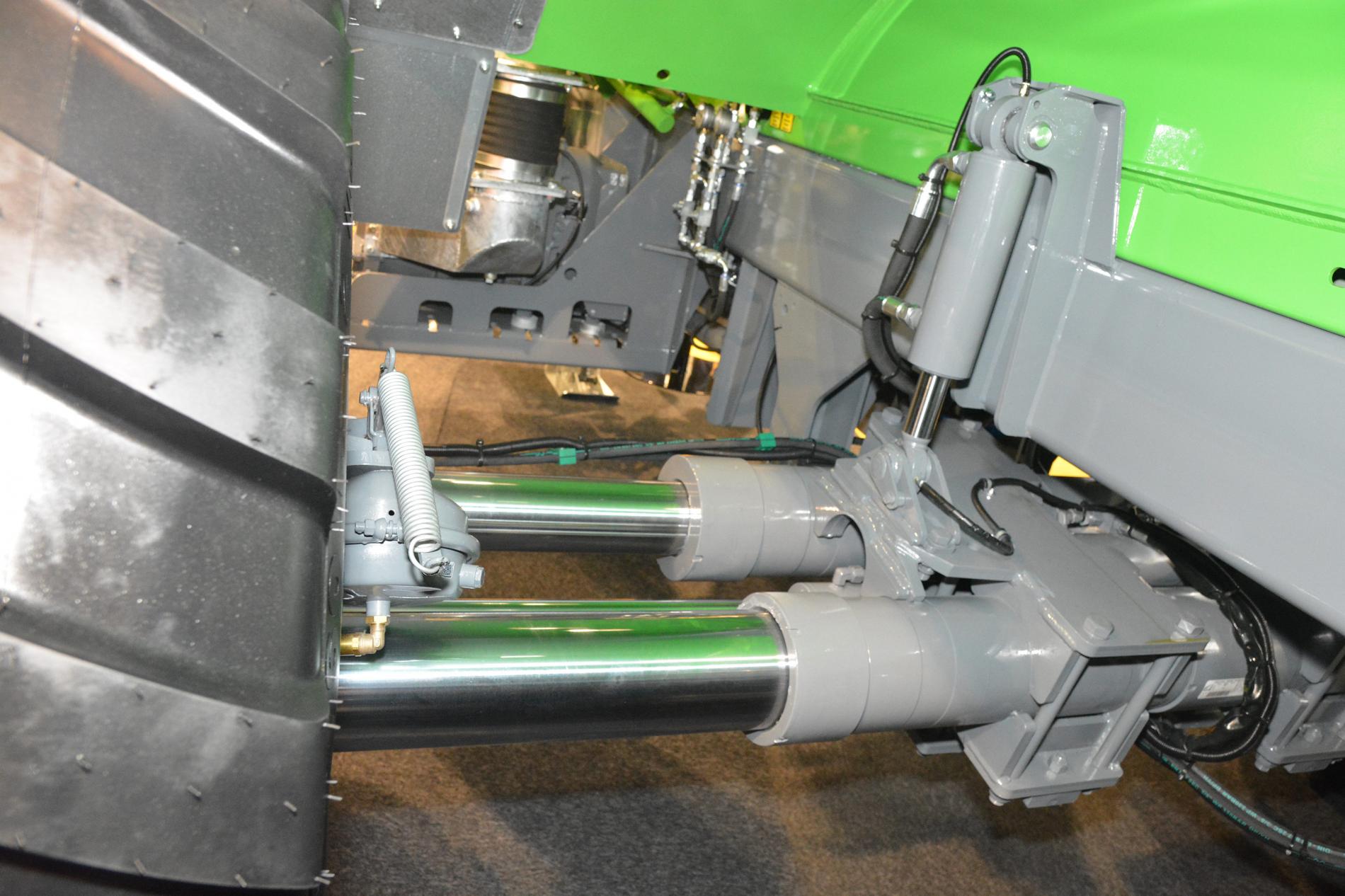 Deze uitvoering zorgt aan de ene kant voor een betere stabiliteit, zelfs op heuvelachtige terreinen, en aan de andere kant voor een betere verdeling van de bodemdruk, en bijgevolg voor minder bodemverdichting bij het verspreiden aangezien de contactoppervlakte met de banden verdubbeld is.