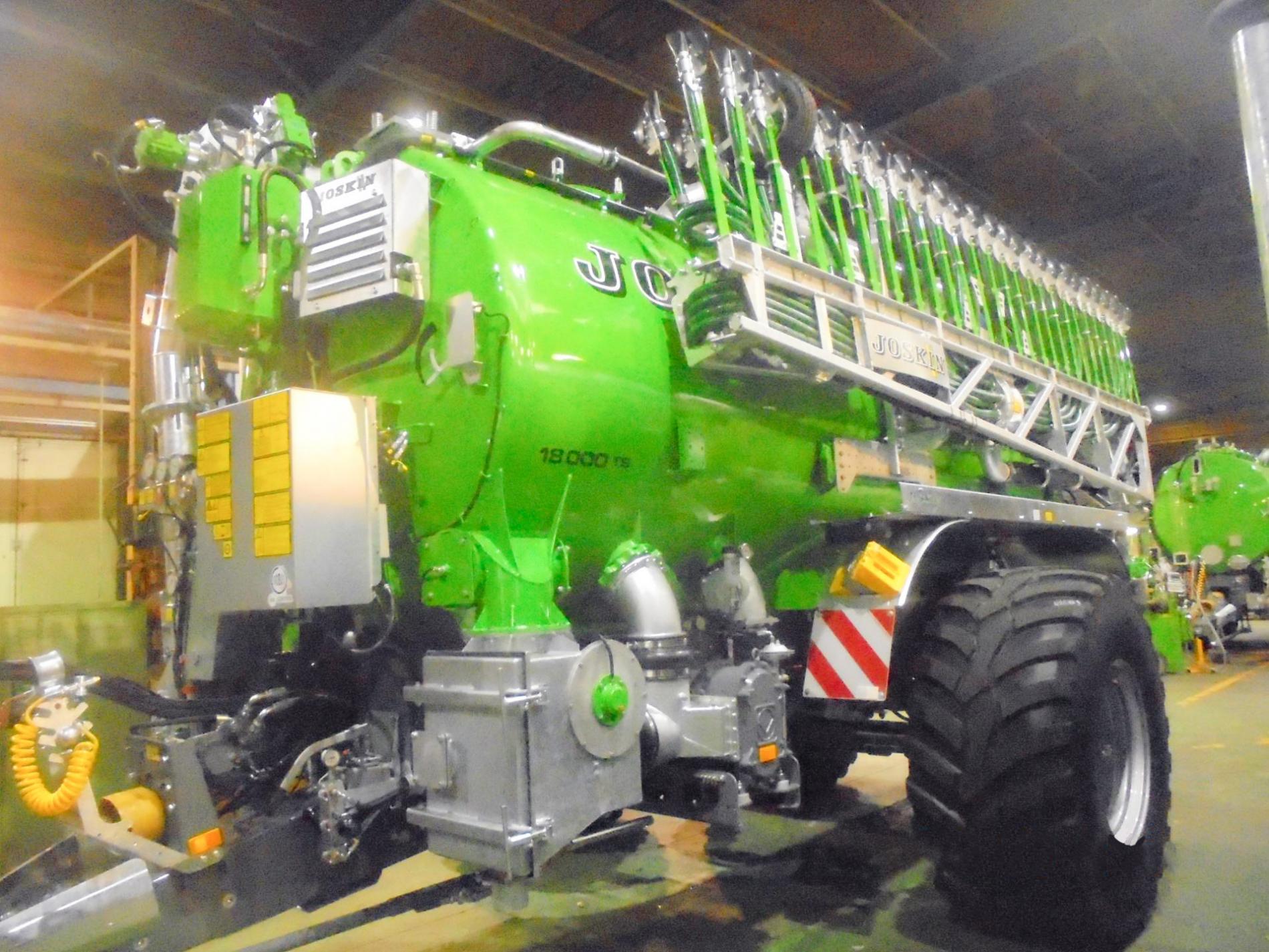 JOSKIN stelt een dubbelassige X-Trem mengmestverspreider met uitschuifbare as voor. Deze wordt door ADR vervaardigd en is aangeboden met remmen van 420 x 180 mm. Zijn spoor is 2.280 mm breed in weg-positie en kan 3.700 mm bereiken op het veld (uitbreiding van 710 mm aan weerszijden).
