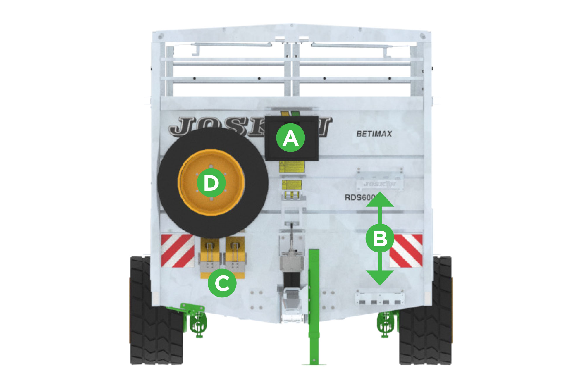 (B) Houder met 4 sleuven voor steelgereedschap.