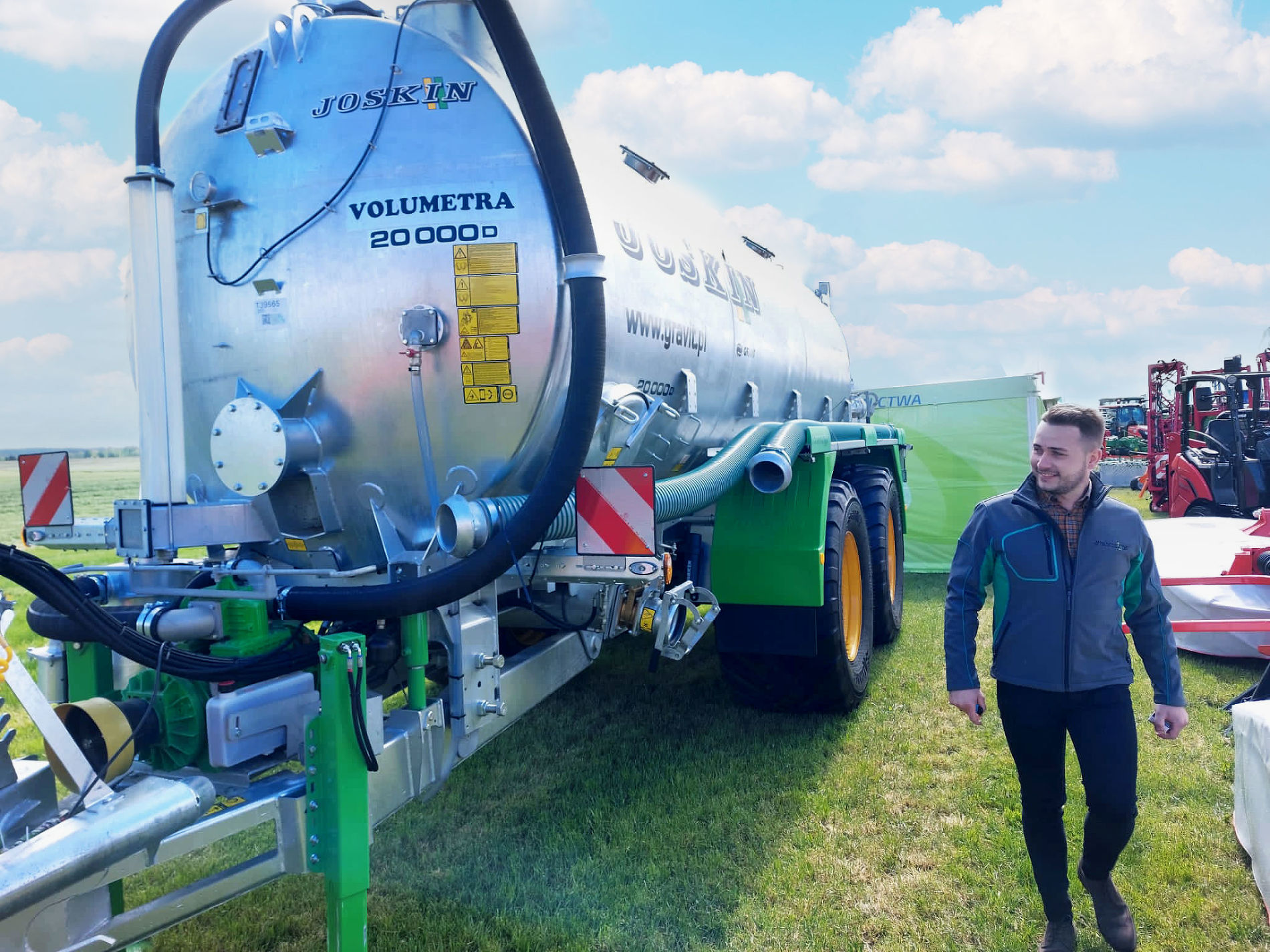 Jeżeli chodzi o maszyny Joskin, które wystawiliśmy wspólnie z dealerami bardzo dobrą oglądalność miała Volumetra 20000l z serii Advantage ADV20000V/3-21, którą można było obejrzeć na stoisku dilera FRICKE. Klienci rozmawiali o rozwiązaniach technicznych a szczególnie o hydraulicznym zawieszeniu, możliwościach rozbudowy oraz dobrej opinii w terenie tejże maszyny. Inną beczkę z serii Volumetra prezentował diler GRAVIT. Była to maszyna konfigurowana pod indywidualne wymagania klienta. Różniła się od maszyny FRICKE brakiem przygotowana do pokrywy oraz podwójnym rozlewaczem właściwym i zamontowanym turbo-napełniaczem. Na stoisku AGROTECHNIKI wystawiliśmy rozrzutnik Tornado 13T z serii ADTO5513H/1-01 z adapterem poziomym Horizon, który również cieszył się ogromnym zainteresowaniem. Rolnicy doceniali możliwość regulacji szerokości rozrzutu i uniwersalność stosowanych nawozów. Nasz kolejny diler KISIEL zaprezentował beczkę Modulo 8400, na której zamontowany był tylny podnośnik do aplikatora co również było tematem wielu rozmów ponieważ rynek rolniczy jest coraz bardziej zainteresowany aplikacją doglebową. Umożliwiło to więc na przedstawienie oferty JOSKIN w zakresie aplikatorów i ramp. Szczególnie ciekawy wydawał się nasz kluczowy produkt czyli Terraflex.