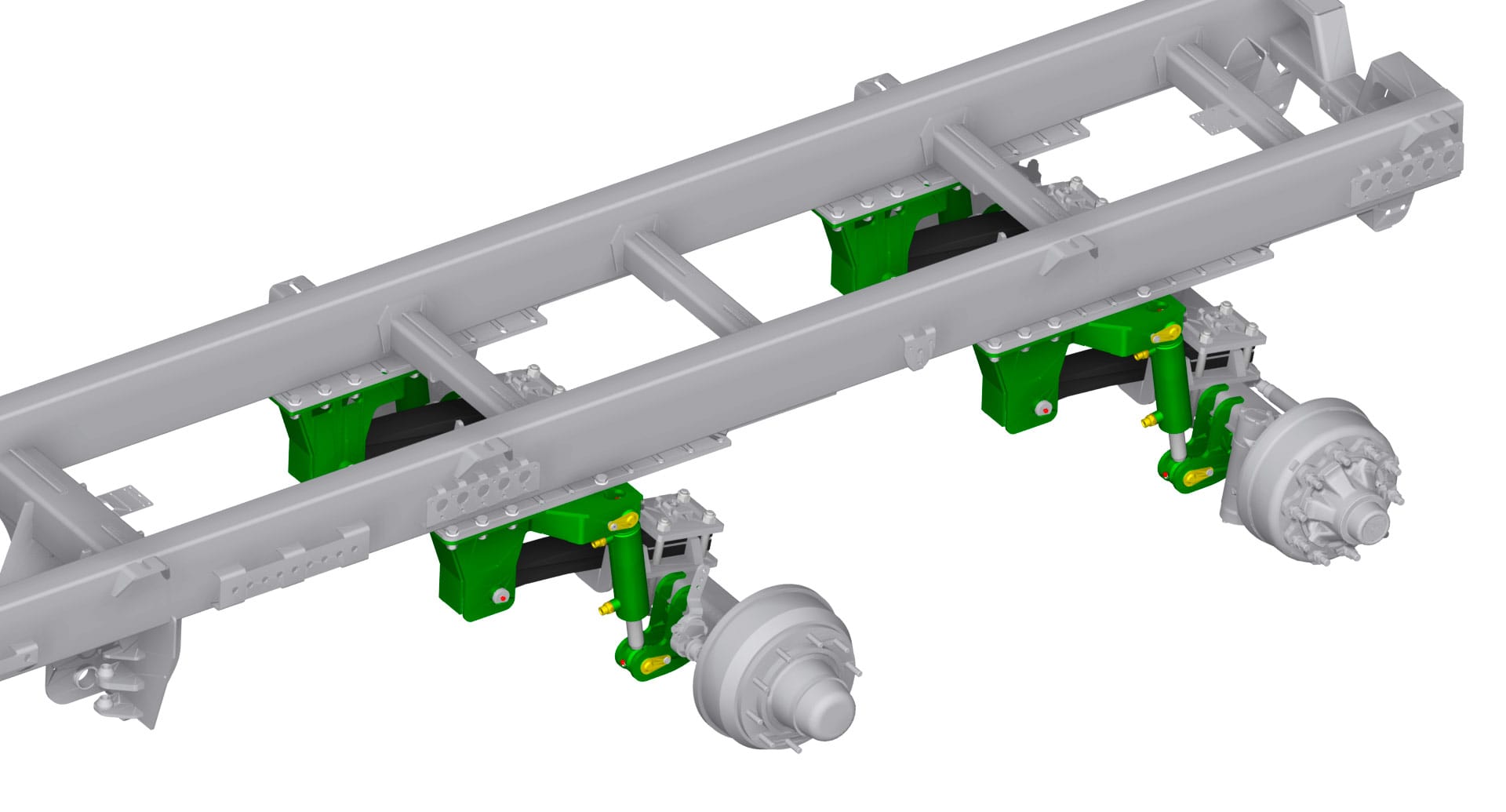 - Xодовая часть hydro-tandem или hydro-tridem крепится на болтах, чтобы кузов можно было переместить на раме в соответствии с установленным оборудованием и обеспечить таким образом оптимальное распределение нагрузки;