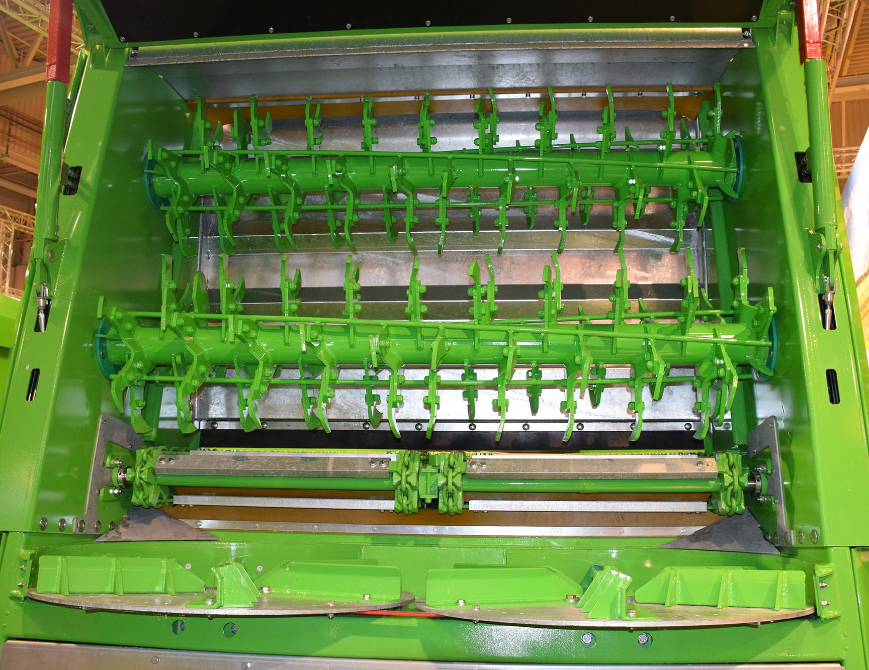 - Aспект, который особенно важен для наших клиентов - это предотвращение накопления навоза в таких местах как гидравлические трубы, расположенные под кузовом. Поэтому последние расположены в центре между двумя транспортерaми под центральным сепаратором;