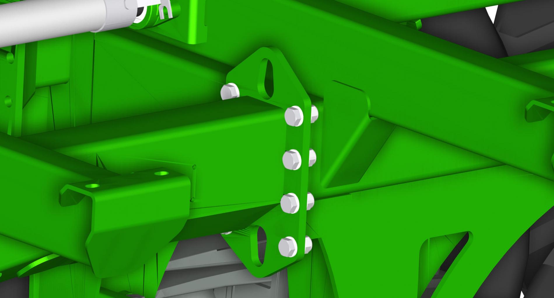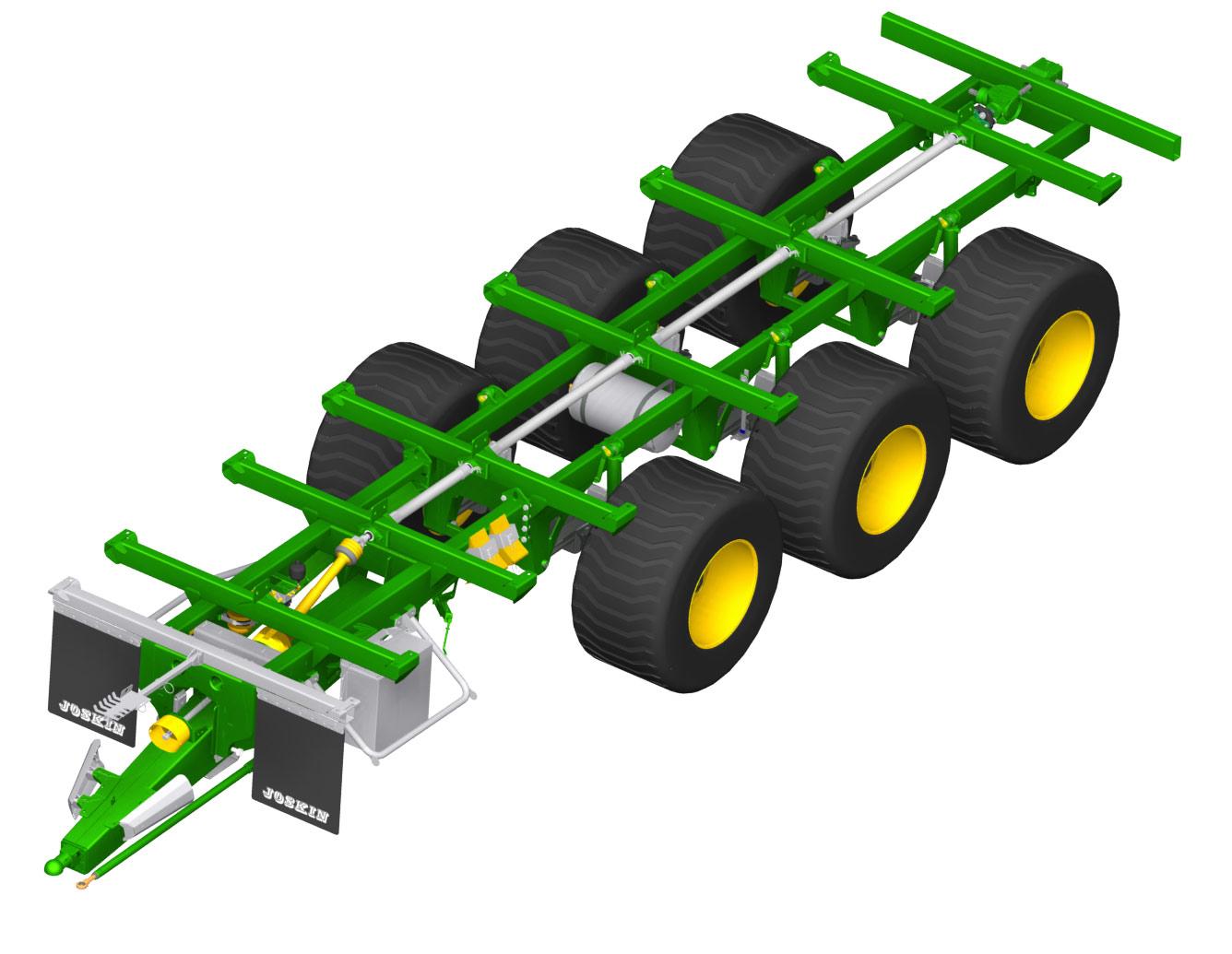 Дышло оснащено параболической подвеской, гидравлическая доступна в опции. Дышло слегка наклонено и закреплено к шасси под кузовом. Как следствие, соединение с трактором еще более компактно, но при этом сохраняет маневренность.