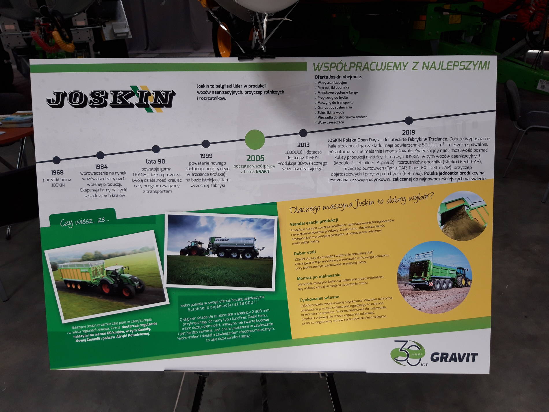Место, отведенное технике JOSKIN, пользовалось популярностью у публики. Посетителей впечатлили самосвальный прицеп Trans-CAP 6500/22BC150 цистерна Modulo2 14 000 MEB. Многие клиенты убедились в эффективности наших продуктов и поблагодарили нас за качественное обслуживание.