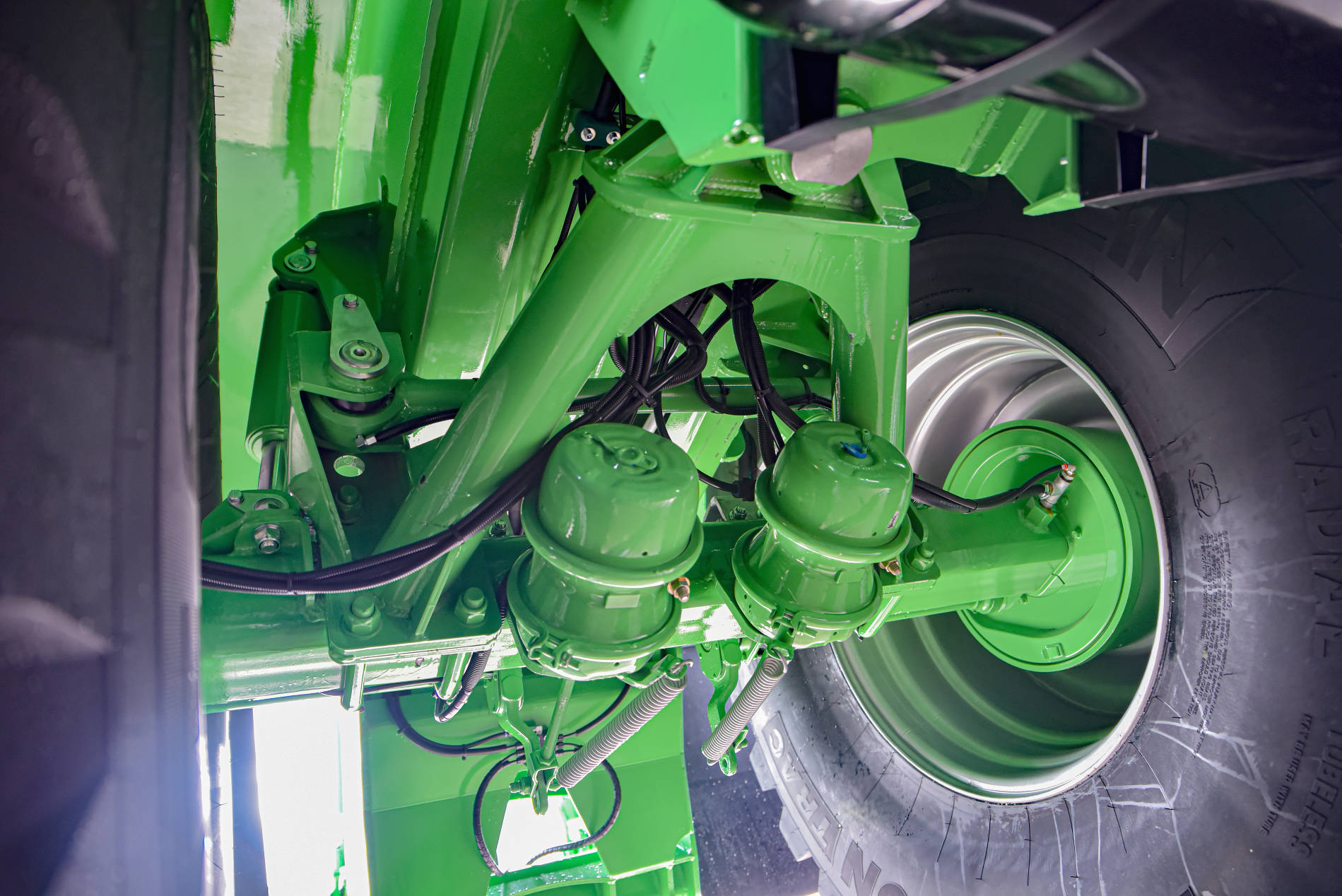 И если эти усовершенствования выглядят убедительны-ми на бумаге, то это подтверждается именно в поле. Благодаря увеличенной контактной поверхности между почвой и шинами, распределение массы значительно улучшается. Колеи, оставленные после руления, менее глубоки. Компактная конструкция обеспечивает низкий центр тяжести. Эта характеристика не только облегчает операции по внесению жижи с широкозахватными штангами, но и придает большую устойчивость и комфорт при работе.